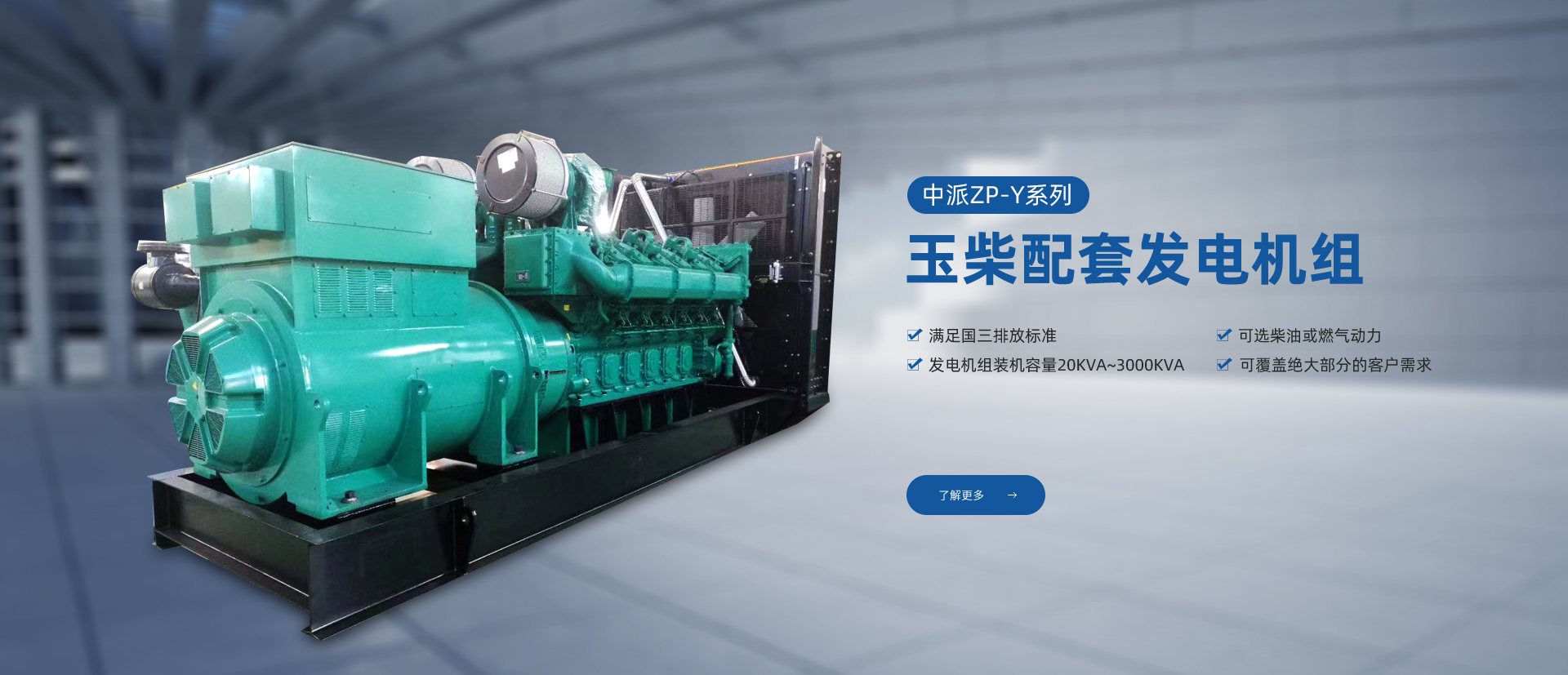 產(chǎn)品特點:中派ZP-Y系列玉柴發(fā)電機組系列機組采用廣西玉柴機器股份有限公司生產(chǎn)的YC系列發(fā)動機,滿足國三排放標(biāo)準(zhǔn),可選柴油或燃?xì)鈩恿Γl(fā)電機組裝機容量20KVA~3000KVA,可覆蓋絕大部分的客戶需求。